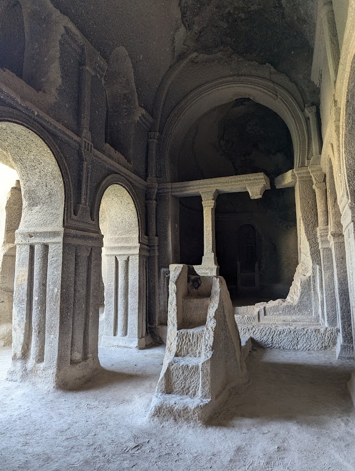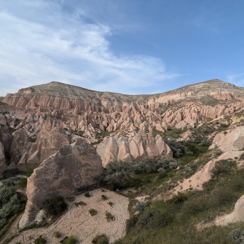 In Cappadocia si alternano paesaggi suggestivi per via delle particolari conformazioni rocciose dovute a eruzioni vulcaniche, e valli con boschi e canyon ricchi di sorgenti. Ovunque possono trovarsi chiese incastonate nella roccia che riproducono lo schema classico delle chiese tradizionali. La pietra veniva, infatti, scavata dall’interno, grazie ai costruttori che si recavano fino al punto più alto dell’edificio e poi scendevano verso il basso modellando poi gli elementi architettonici.