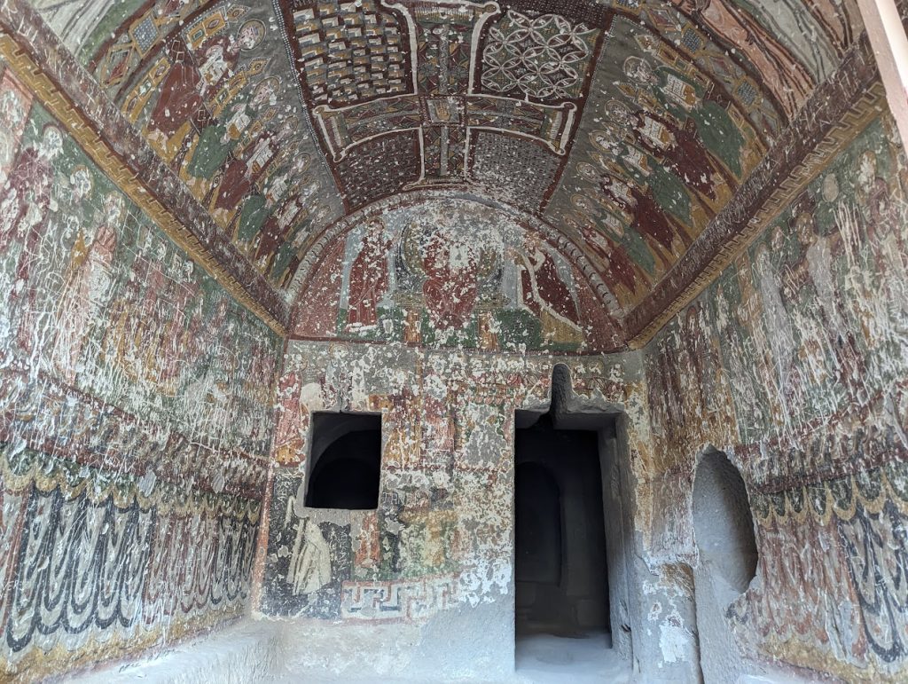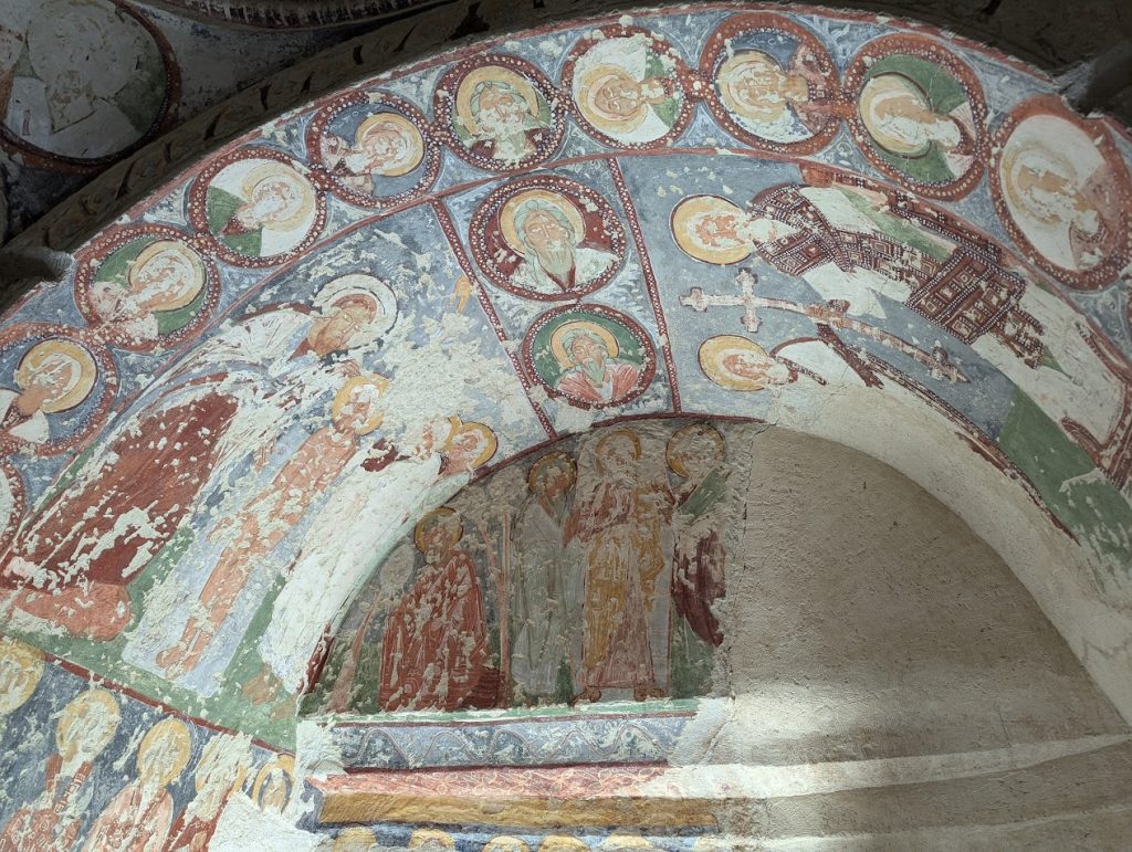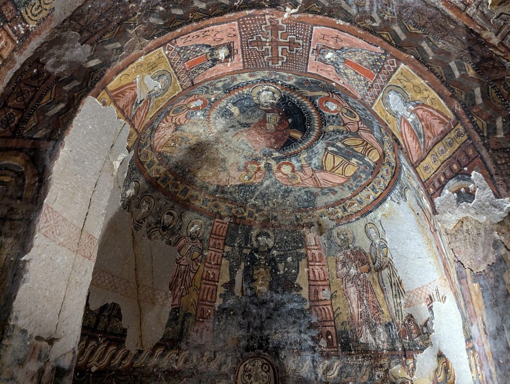 Il gruppo è stato accompagnato da Sergej Šichačevskij, fotografo ed esperto di arte che ha studiato a fondo le pitture contenute nelle splendide chiese rupestri della regione, e Giovanna Parravicini, ricercatrice della Fondazione Russia Cristiana. In Cappadocia sorprende l’enorme varietà artistica degli edifici sacri: da quelli più antichi risalenti al V-VI secolo, a quelli più tardi del XII secolo, da quelli più ricchi di pitture a quelli più spogli e ricercati per lo stile architettonico. Si tratta infatti di un grande laboratorio artistico per capire come tradurre in modo convincente la verità cristiana ai contemporanei. L’arte della Cappadocia – i cui studi sono ancora alle fasi iniziali – è un’esperienza particolare e variegata, che ha subito molte influenze per la posizione della regione situata in una sorta di crinale fra l’Oriente e l’Occidente.