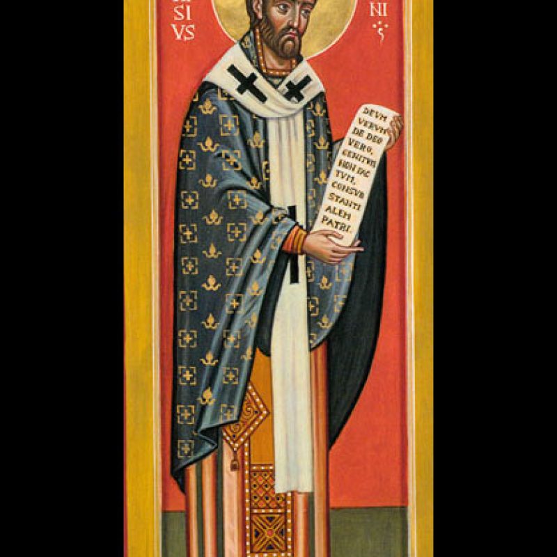 Gli autori delle icone fin dall’inizio sono stati messi davanti ad un compito paradossale. Da un lato avrebbero dovuto dipingere santi antichissimi, noti alla Chiesa fin dai primi secoli: martiri, teologi, missionari, fondatori di monasteri, vescovi e principi. Questi santi hanno dato il nome a città, ospedali, scuole, in tutta Europa e non solo. D’altro canto molti di loro erano in qualche modo «invisibili» per l’iconografia, il linguaggio visivo con il quale la Chiesa parla del mondo e di sé. Di molti santi non si sono conservate icone, e in vari casi non ne furono mai dipinte, innanzitutto perché in Europa occidentale la storia dell’arte sacra si è sviluppata diversamente da Bisanzio o dalla Rus’, non dappertutto esiste la pittura di icone «classica», come la intendono i teologi. In secondo luogo, la divisione delle Chiese ha fatto sì che in Oriente, dove l’arte dell’icona si è conservata più a lungo, si smettesse di considerare come «propri» molti santi occidentali, e non si dipingessero quasi mai loro icone. Per questo motivo gli iconografi spesso non hanno potuto fare riferimento ad alcun modello storico, e hanno dovuto «scrutare» i santi dei primi secoli ex novo, tradurre in volti dei puri nomi.